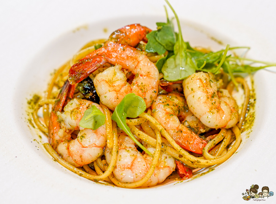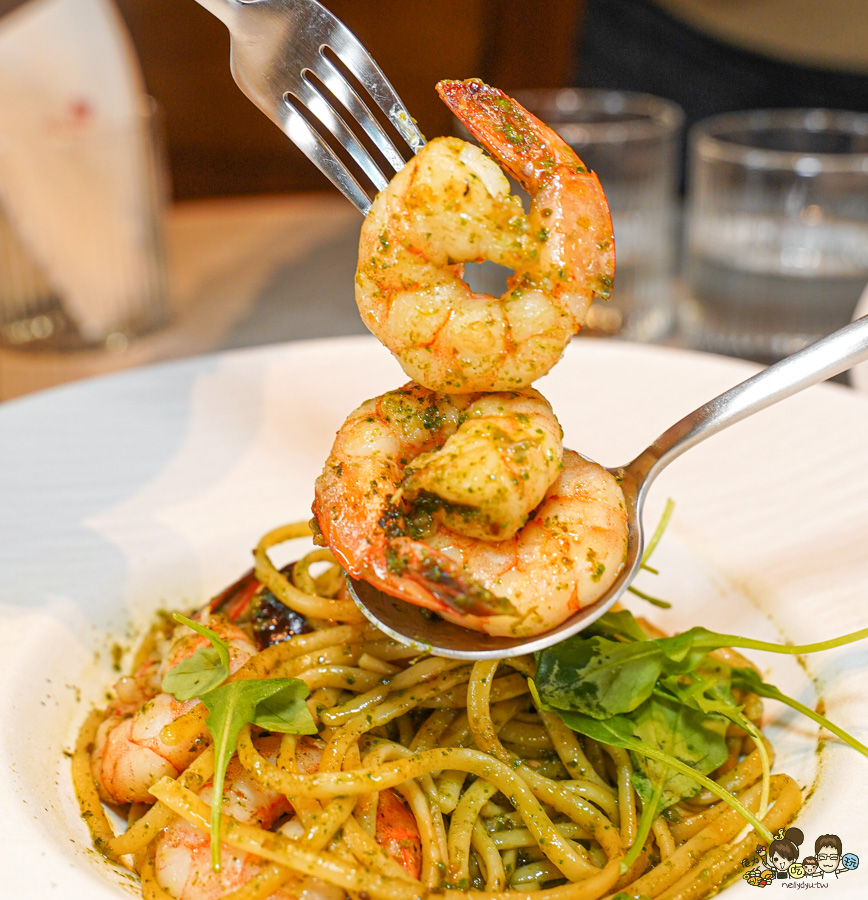青醬蕃茄鮮蝦義大利麵