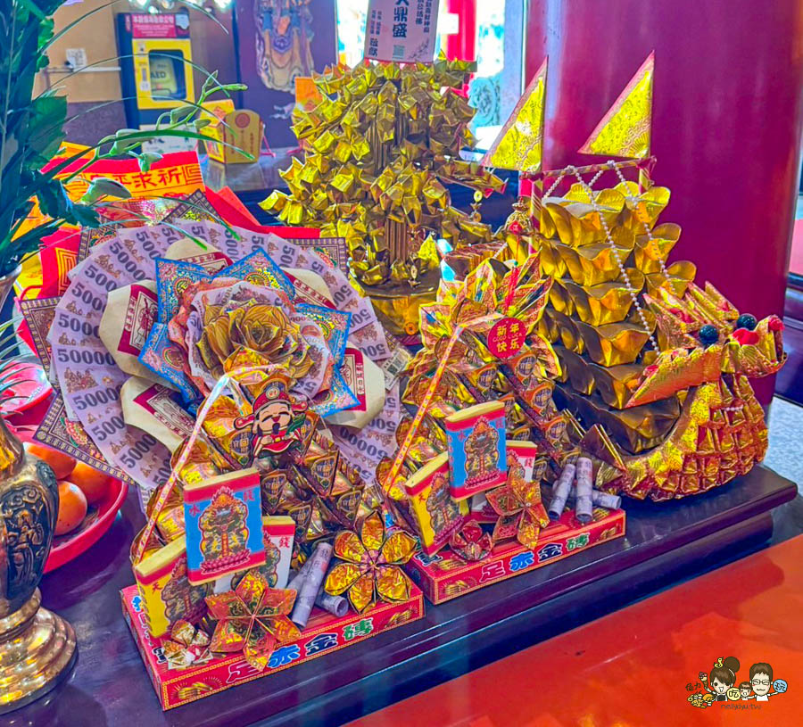 來這裡都求發財居多,廟左右兩側就有巨無霸的金元寶在屋頂