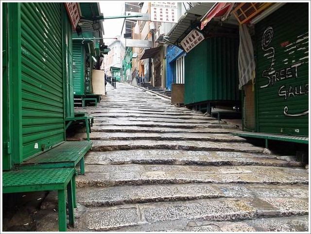 吃飽飯後散步在中環都爹利街石階,遊逛香港巷弄的酒吧、懷舊景色、高樓大廈