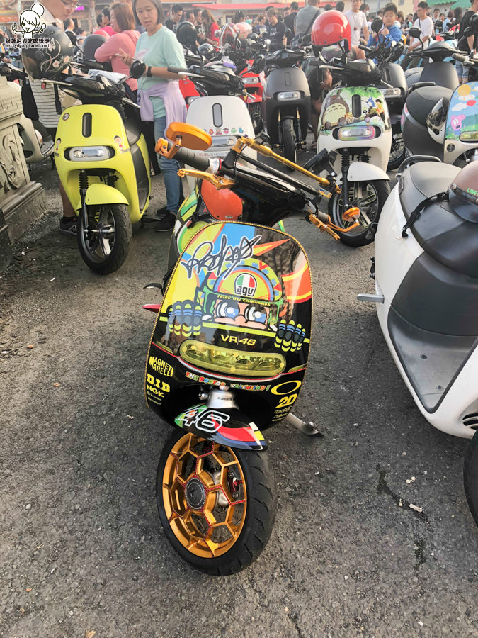 一整個廟的廣場都是GOGORO,不管幾代都可以一同來餐與