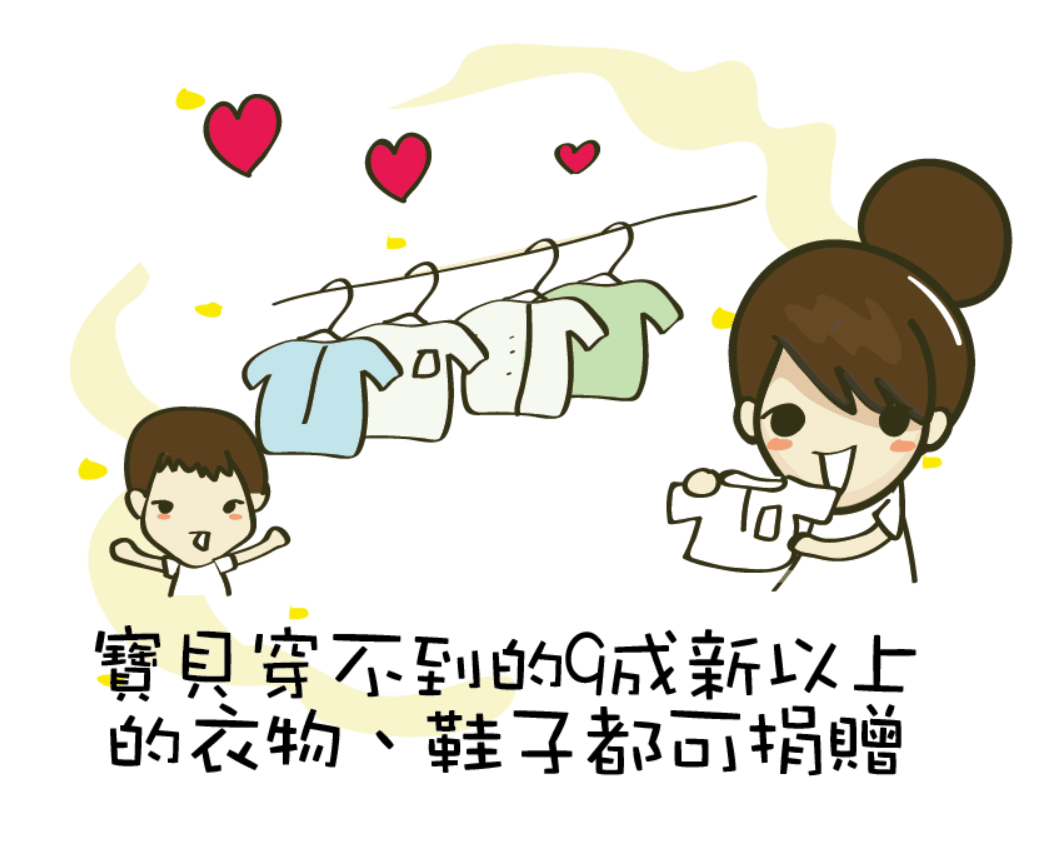 新品、二手衣物都可以做愛心捐贈,盡量不要損壞的物品唷~~