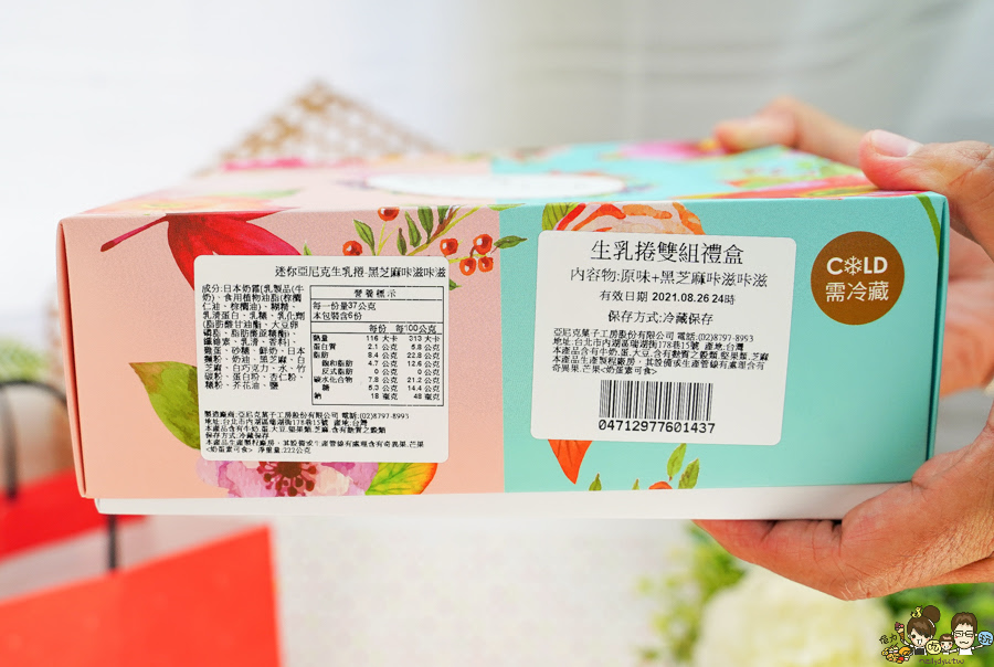 原味生乳捲、黑芝麻咔滋咔滋生乳捲,雙捲禮盒 手繪帶有溫度質感的包裝禮盒,好美!