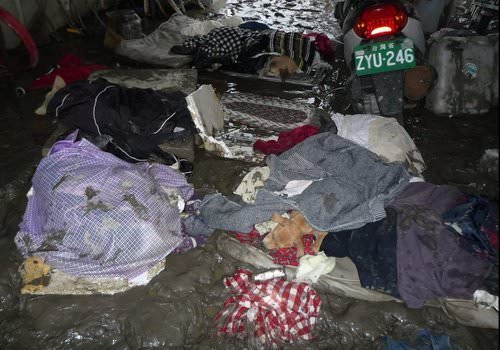 而屋頂下早就是汪洋一片了,雖然水退了,但都佈滿了泥巴