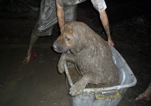 淹死在狗場中,一些義工們早就在狗場裏忙著救那些還有一絲氣息的狗兒