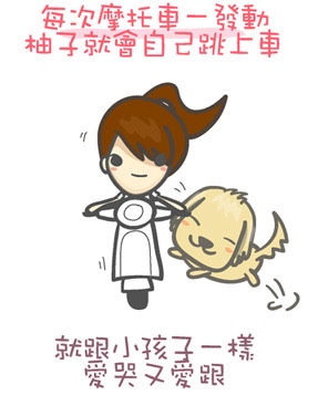 我家的麻吉跟喵喵都很喜歡坐摩托車耶:)))