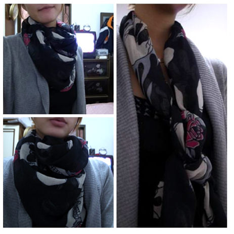 (骷顱頭玫瑰圍巾,算絲巾,無保暖效果)