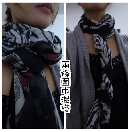兩條圍巾組合在一起使用~很難會撞衫了