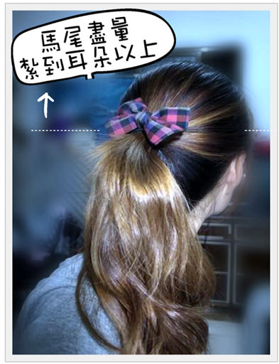 (先把紮個馬尾,盡量把馬尾綁高一點,這樣綁出來的包子頭才會好看)
