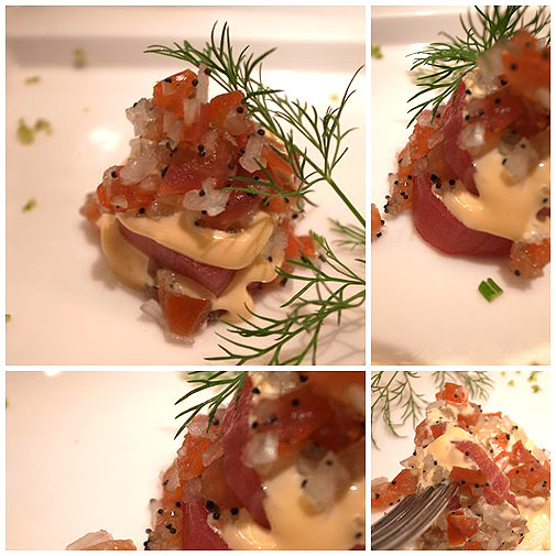 結果是生魚片鮪魚,已經擣碎,上面有調味加上黃芥末