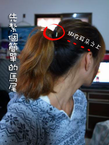 先綁個簡單的馬尾,馬尾的高度要高於耳朵之上