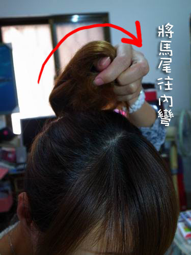 將髮尾往內凹~~