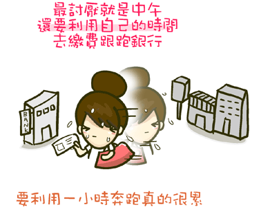 不然每個月都要跑銀行、繳費等都很浪費時間