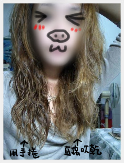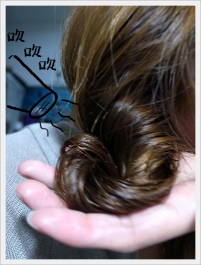 方法就是:將頭髮捲起來,用吹風機哄,在將頭髮放開,捲起來,烘乾,放開…來回這樣的動作直到頭髮烘乾