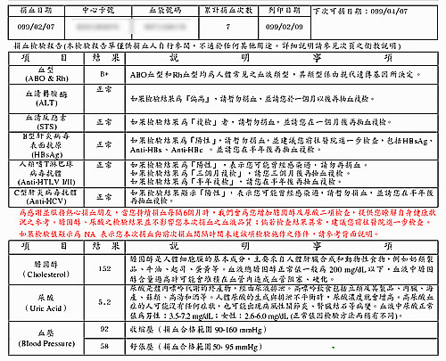 才兩天的時間我就收到e-mail寄來的捐血報告書