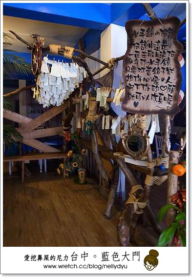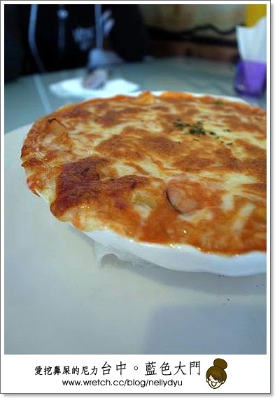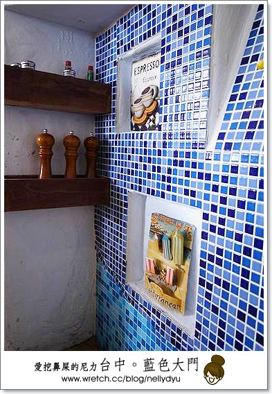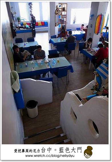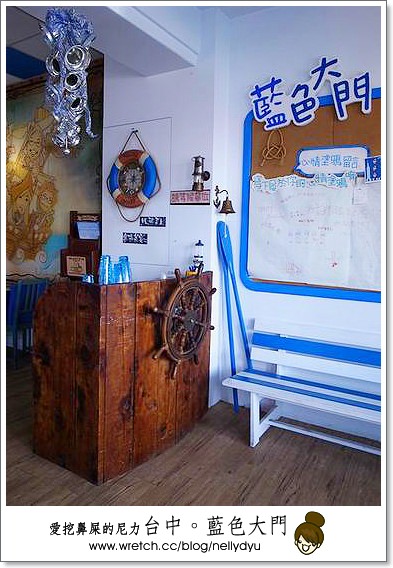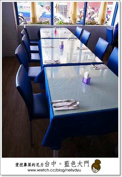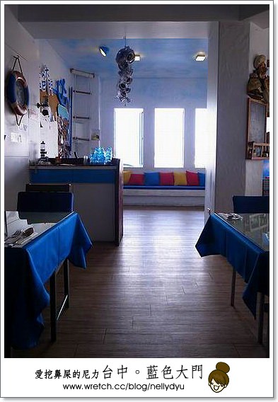 我們去台中那天是住逢甲之星,附近就是逢甲夜市,民宿附近有非常多特色的餐館,由於我們很懶,加上大家剛起床,天氣熱又不想走太遠,於是就選擇外觀還蠻醒目的地中海特色餐廳-藍色大門。