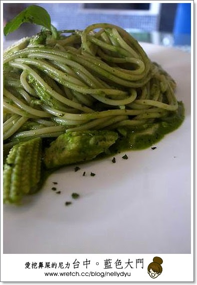 我點的是青醬義大利麵,裡面的蔬菜、玉米超多!
