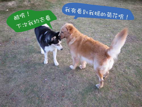哈哈!狗狗真的好可愛~~跟小孩子一樣!!