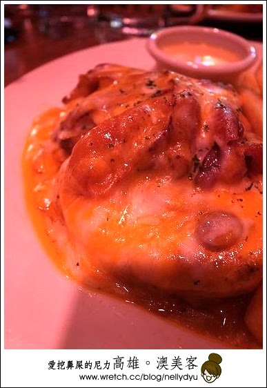 滿滿的焗烤,還有剁碎培根,搭配的醬是”法式鄉村醬”