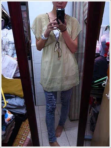 他還有另外一色~~~但店員說我比較適合這件!!搭配褲子我比較敢穿!ㄏ