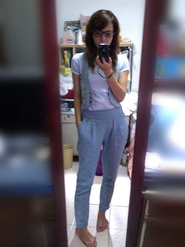褲子有一點彈性,缺點就是扣子一扣就掉了….害我又自己縫