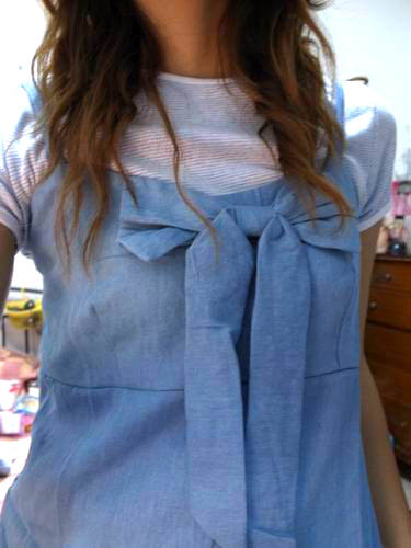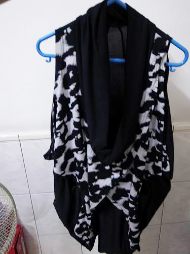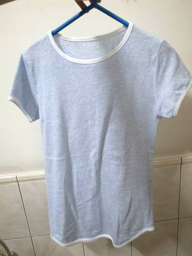 淡藍色橫紋上衣,質料很軟,這種應該洗沒幾次會鬆垮,