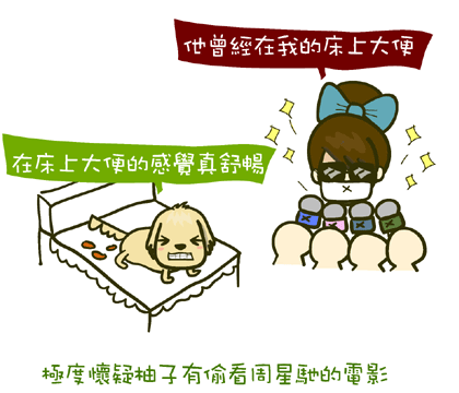 可見他看過周星馳的電影(床鋪可以將大便傳送到大海,乎)