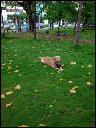 今天在愛河,遇到可愛的柚子,可惜我家的狗不禮貌~~