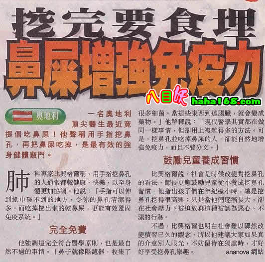 我的媽呀~還真的有吃鼻屎比較健康的文章喔
