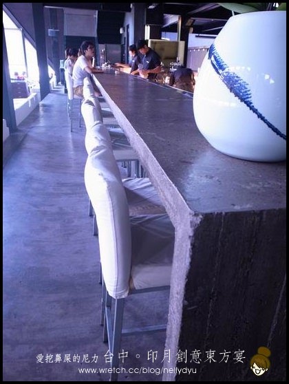 白色的椅子搭配水泥砌成的吧台桌,我好愛這種搭配