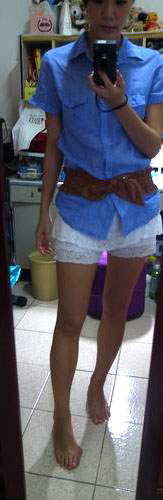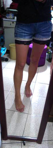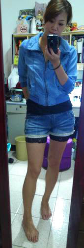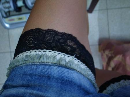 接著是我把黑色的蕾絲安全褲穿在牛仔褲裡面,打造有層次的感覺