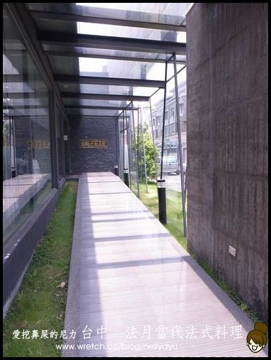 進入的走廊則是水泥牆面搭配落地大面玻璃