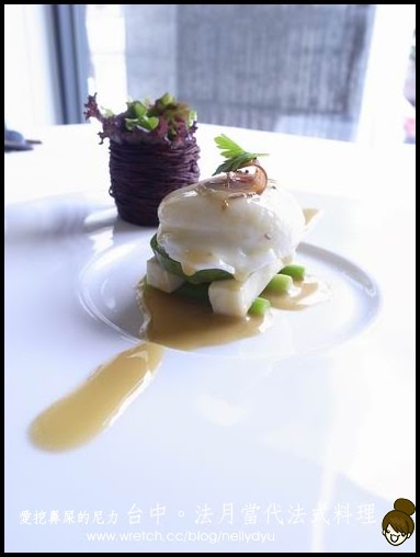 前菜,蘆筍水波蛋佐帕瑪火腿乳酪