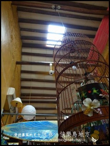 快樂鳥地方一進來就可以看到一個巨大的鳥籠懸掛在上面