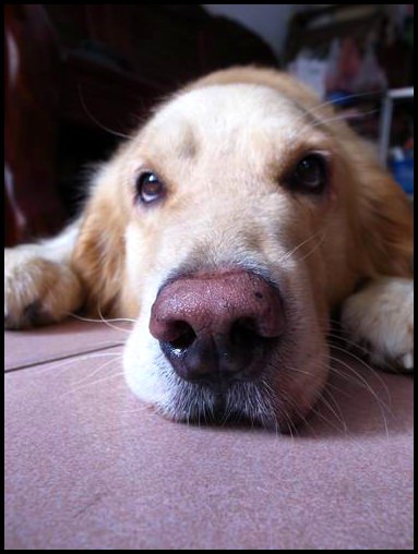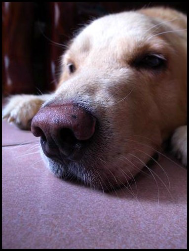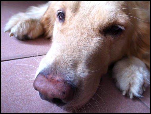 他年紀比較大了~所以在變顏色了!沒有黑不隆冬的鼻子了