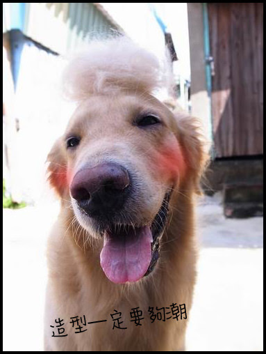 還配上假髮好潮喲!!(其他狗狗應該吵著主人要買了XD)