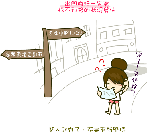 我也常常因為自己太路癡而對自己發脾氣~哈!!