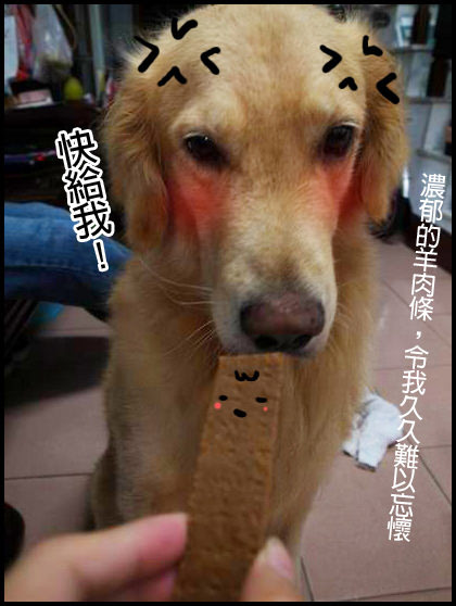 那肉條真的是狗兒的高級點心耶
