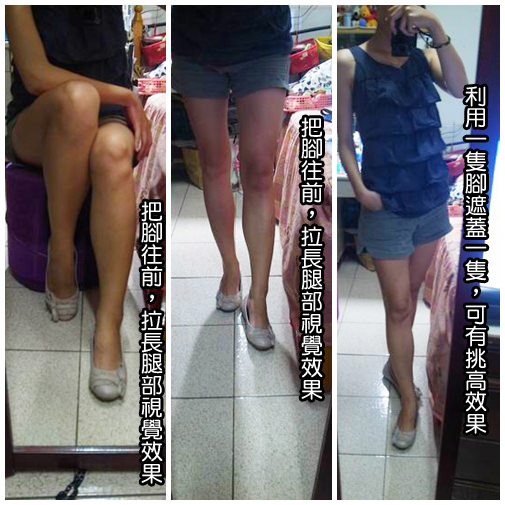 或者小秘訣用前遮住後腳,減少肉體的獻出,當然也會顯得比較瘦