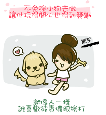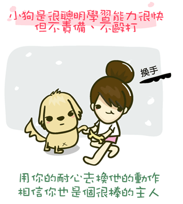 我訓練狗狗有些動作他學很快,有些卻學很慢很慢,而且他太愛玩了,陌生人叫他握
