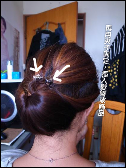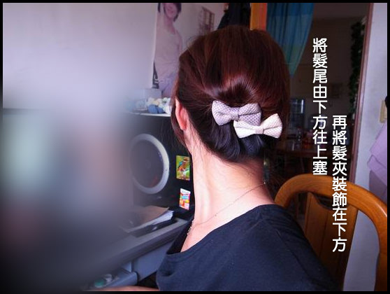 接著將固定點往上提,用黑色髮夾固定即可