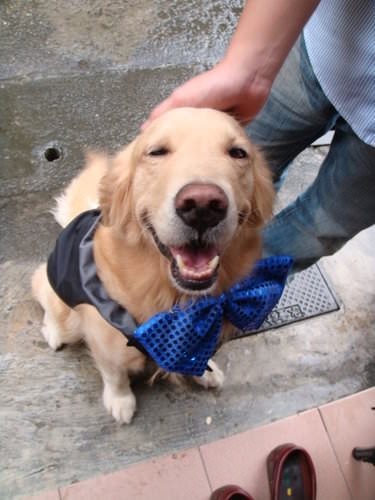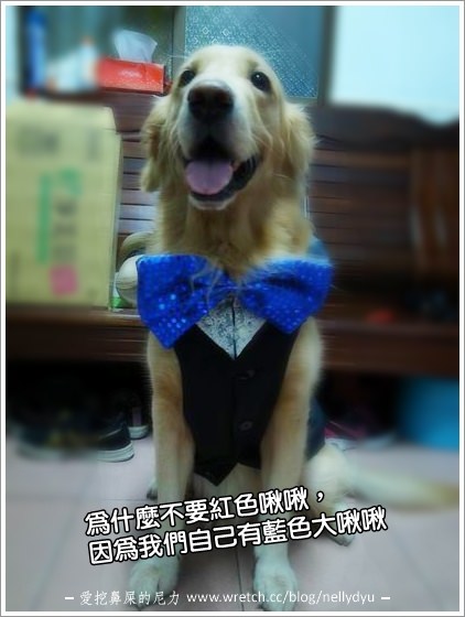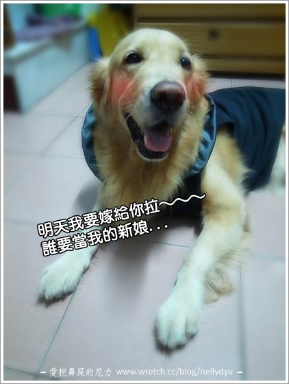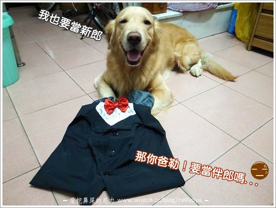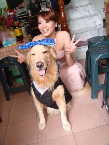 所以我想在我結婚的時候也想幫我家的黃金獵犬也做一件