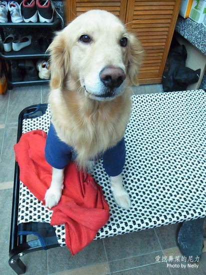 果然最近天氣很冷..柚子都得穿上衣服囉
