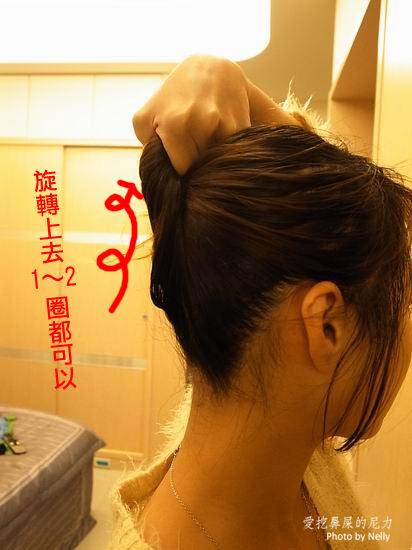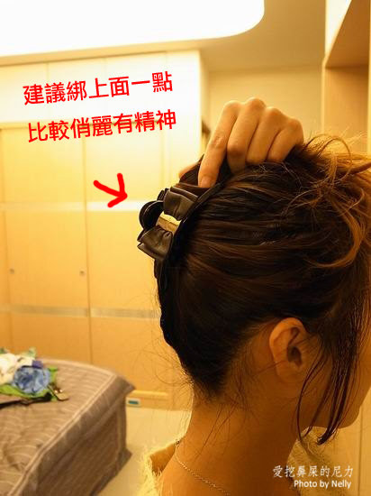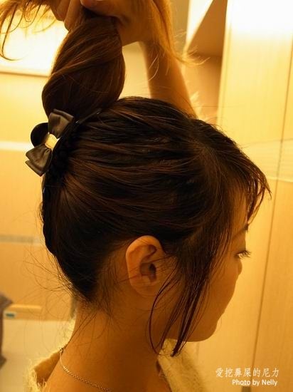 接著很簡單,將頭髮往上盤