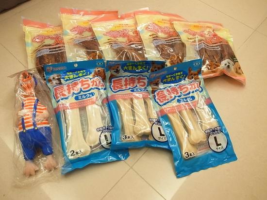 內容物有: 150g雞肉片 5包 + IRIS皮骨 3包 +玩具 1個