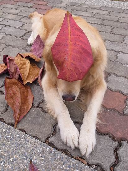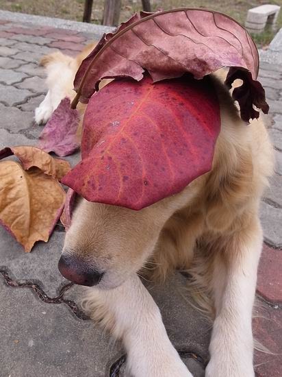 柚子好乖~跟落葉也太搭了@.@