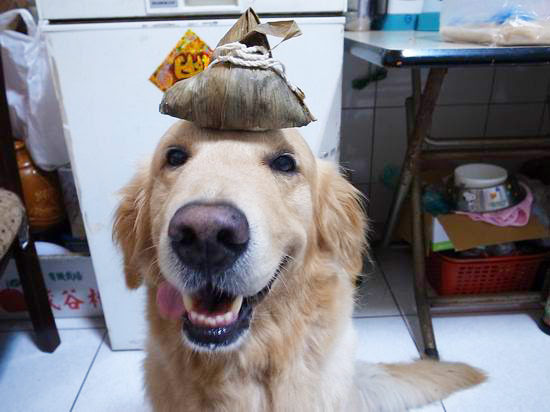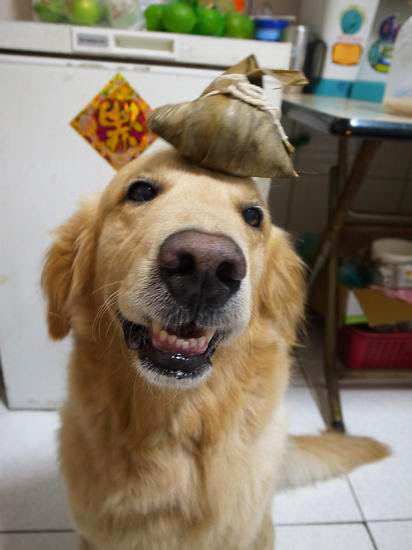 柚子太厲害了~連粽子都頂得穩穩的~ha