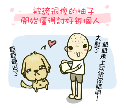 好好笑喔~我家也是都有這個情形。柚子好可愛,妳的旁白也很好笑,也許真的是柚子