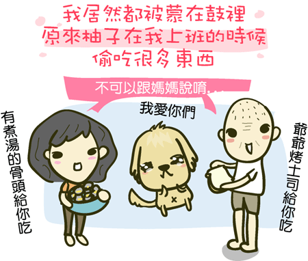 然後我媽都很疼他,都會偷偷拿點心給他吃= =