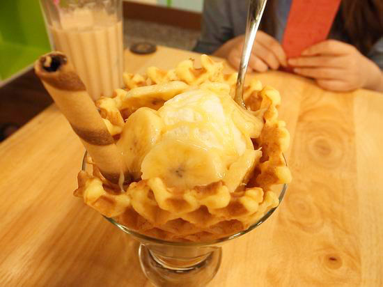 搭配香蕉跟冰淇淋,真的歐賣尬….