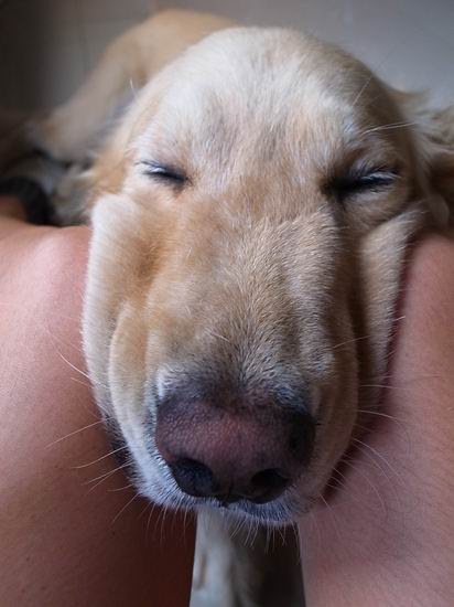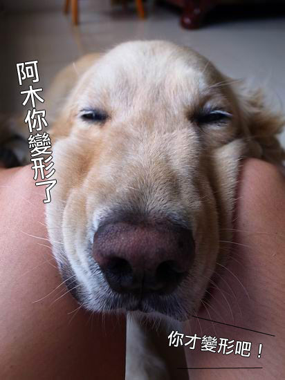 哈哈~狗狗體溫很高~~窩在一起好熱阿!